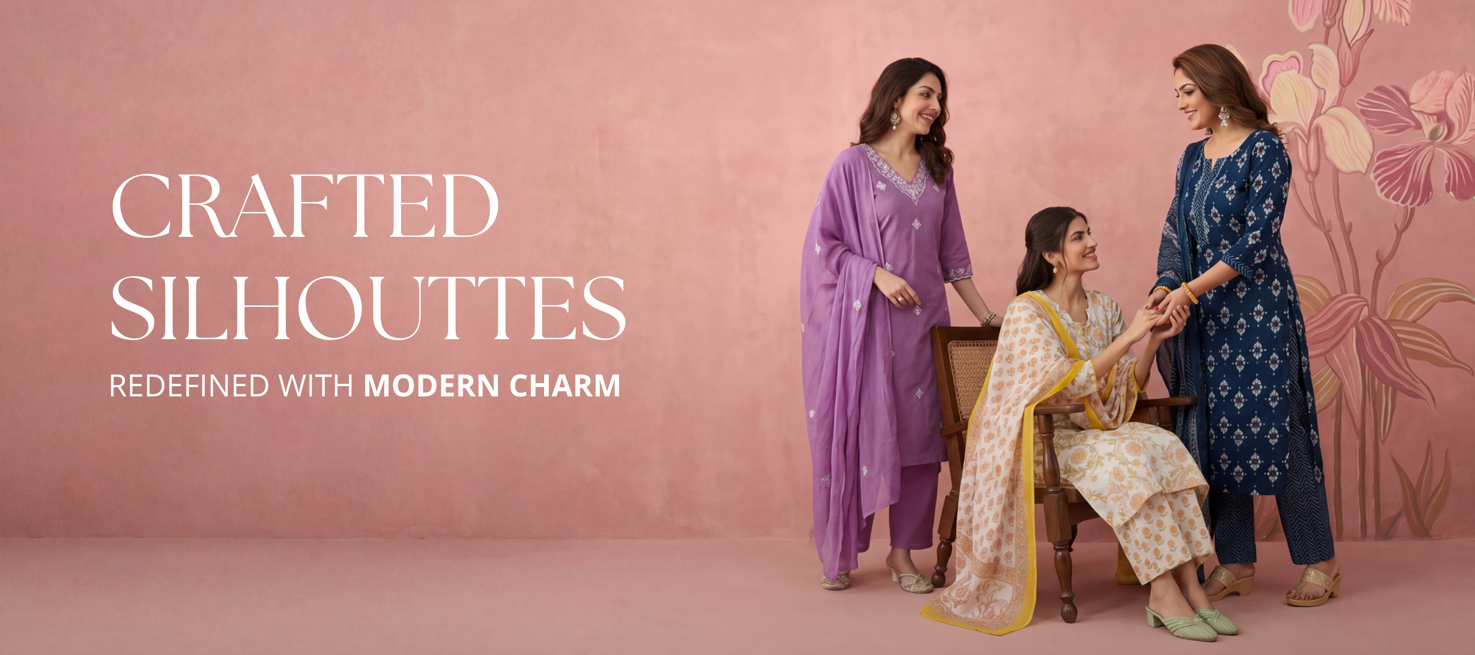 Rouge Pink Elegance A-Line Suit Set with Ivory Accents & Cotton Dupatta