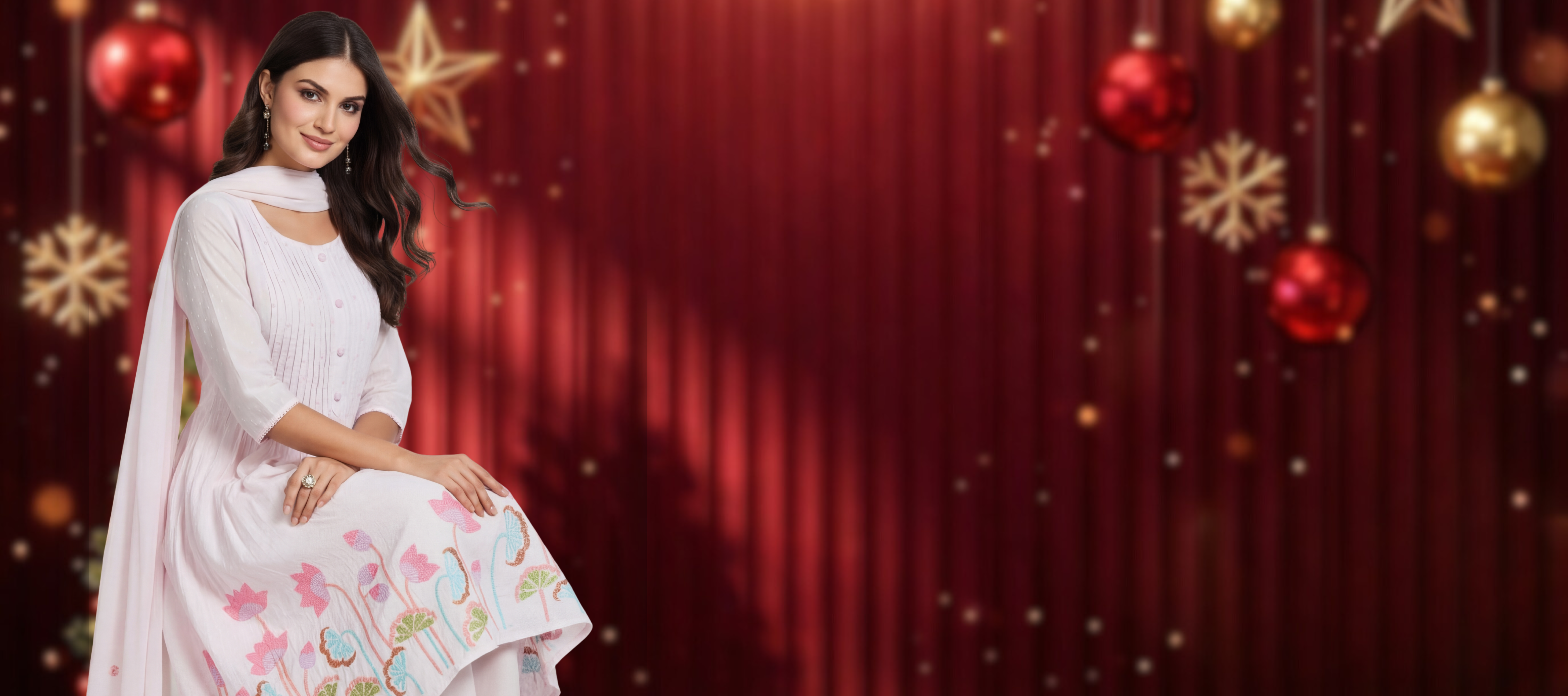 Rouge Pink Elegance A-Line Suit Set with Ivory Accents & Cotton Dupatta