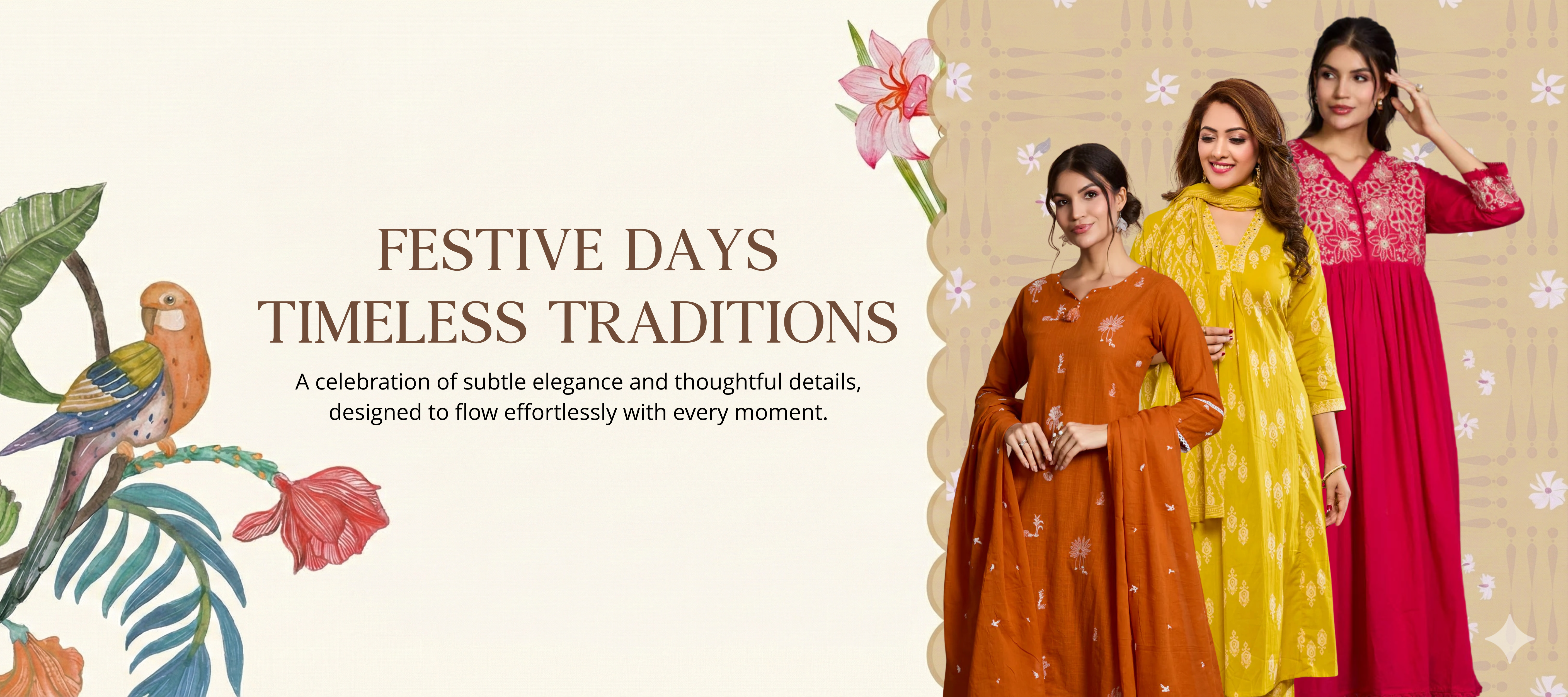 Tangerine Glow A-Line Suit Set with Ivory Embroidered Details with Cotton Dupatta