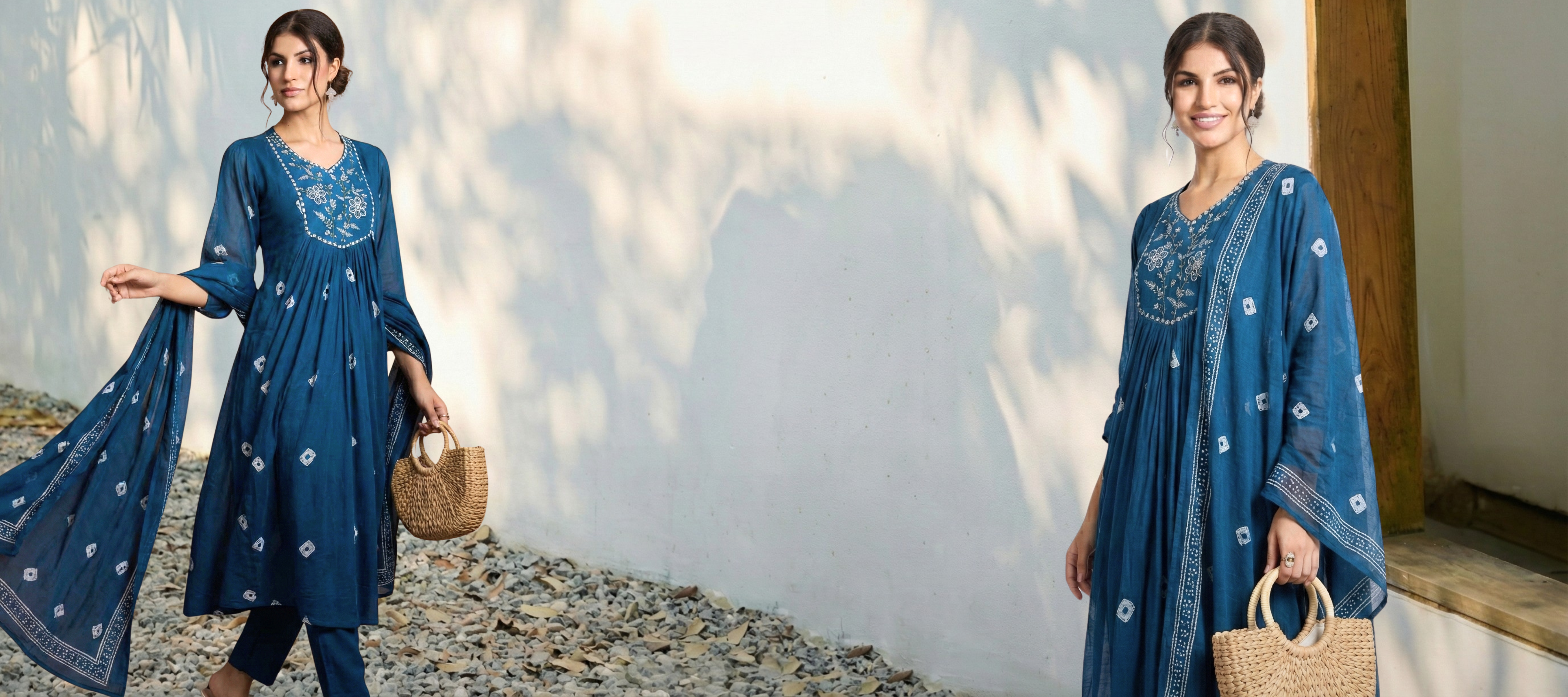 Deep Indigo Handblock print Straight suit set with Soft cotton Dupatta